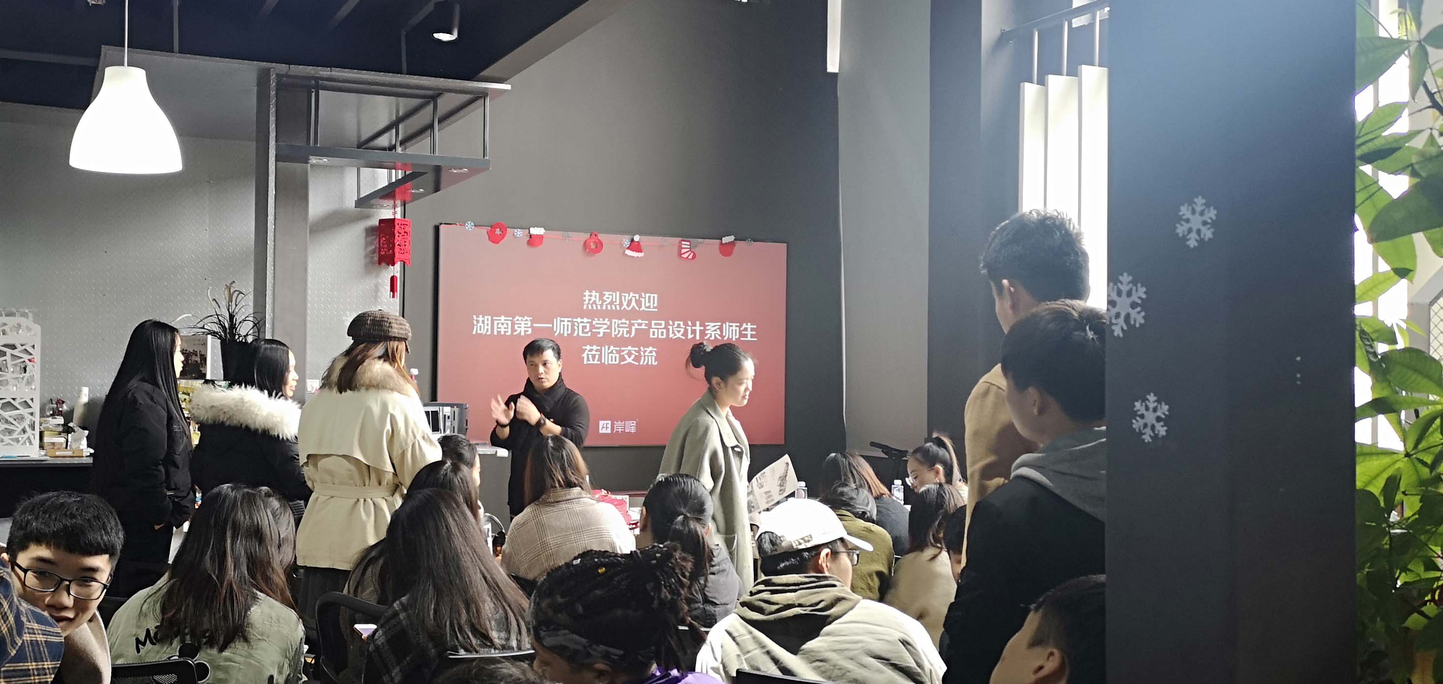2018年12月27日上午,岸峰迎來(lái)了湖南第一師范學(xué)院產(chǎn)品設(shè)計(jì)系的師生,在冬日的暖陽(yáng)中進(jìn)行了一場(chǎng)熱鬧的設(shè)計(jì)交流