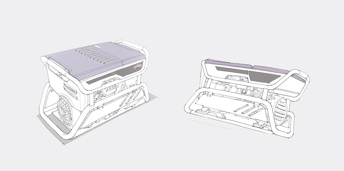 讓發(fā)電機這個在人們潛意識較為敦厚的形象此刻變得豐富多彩,弧線賦予剛直之上,剛柔并濟,意味釋放無限大能量及迸發(fā)強勁,