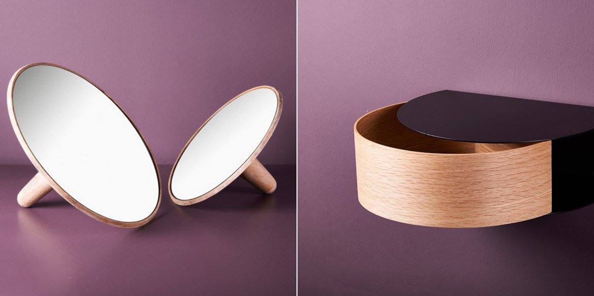 奧地利設(shè)計師martin zanolin創(chuàng)作的“barb mirror”由兩面帶有封閉把手的鏡子組成,這讓它在充當(dāng)墻鏡的同時,也可以在化妝時作為手鏡使用。鏡框由實(shí)木橡木組成,并有21和26厘米兩種規(guī)格。丹麥設(shè)計師laura bilde設(shè)計的“mirror box”是一件半鏡半架的存儲式家具。憑借其斯堪的納維亞風(fēng)格的簡潔外觀,該款設(shè)計可以適用于廳堂、臥室或者辦公室等多種空間。清晰的線條設(shè)計,可以容納多達(dá)四只盒子,為不同需求的用戶提供了可以輕松調(diào)整的儲物區(qū)域。該鏡的直徑為半米。