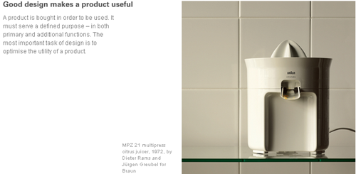 Products that satisfy this criterion are tools. They are neither decorative objects nor works of art. Their design should therefore be both neutral and restrained leaving room for the user’s self-expression.