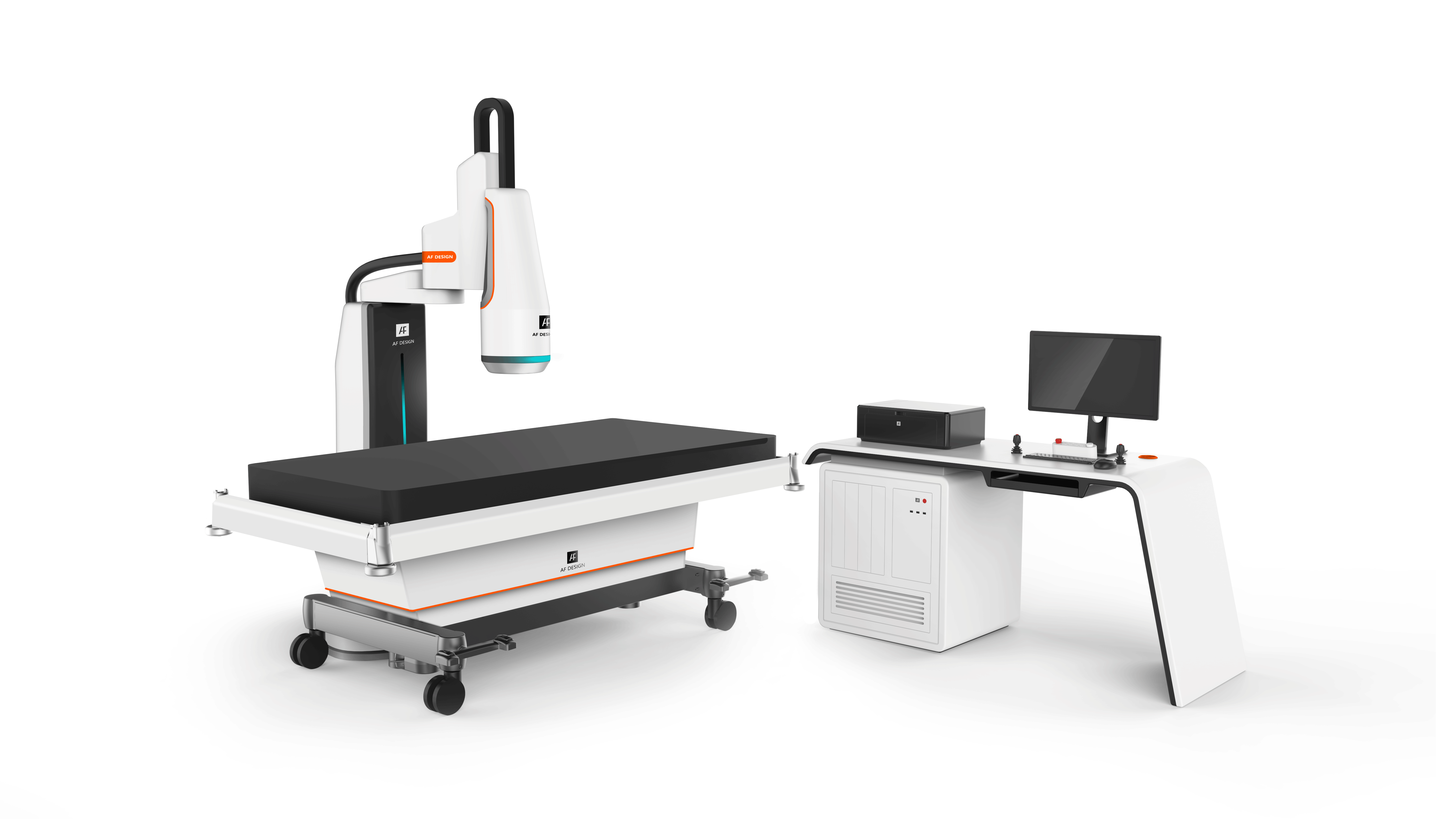 采用大塊的白色塑料加橙色線條點(diǎn)綴,給冰冷的醫(yī)療設(shè)備帶來一點(diǎn)溫度