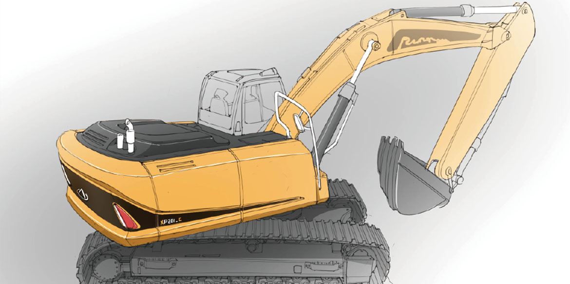 挖掘機(jī)繼承傳統(tǒng)的樣式樣貌,但色彩比例搭配有所創(chuàng)新。黃色與黑色的酷炫搭配,既能使操作工增加樂趣,也能使挖掘機(jī)本身具有一定的吸引力。