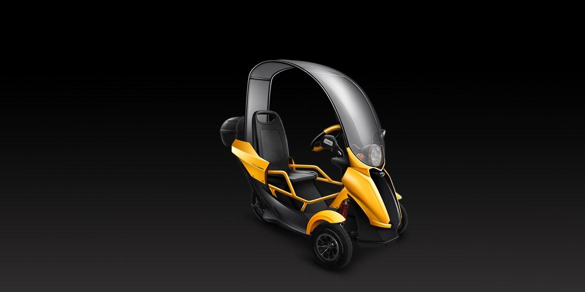 黑色黃色搭配出熱情與速度,黑色與白色摩擦出神秘與溫度。采用三輪設(shè)計,前兩輪,后獨輪操控轉(zhuǎn)向,整車采用黑黃配色,
